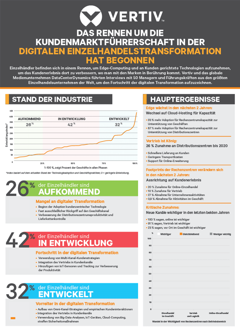 ZUM VOLLSTÄNDIGEN REPORT| Beinahe 90 % der „Fortune 500“-Einzelhändler wenden sich für den Schutz ihrer Technologien, die das Kundenerlebnis fördern, an Vertiv. Finden Sie heraus, wie wir auch Ihnen helfen können. |