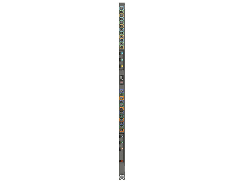 Outlet Level Monitored Rack PDU VP6N60A1 is a 60A, 208V Delta 0U vertical with input and outlet level power monitoring. It has 12 locking IEC C13 and 12 locking IEC C19 receptacles and a 3P+E IP67 plug providing 17.2kW of power capacity. Outlet-level power monitoring offers quick access to critical power usage information down to the device level to evaluate energy usage trends and maximize uptime. The unit is equipped with an environmental sensor port and dual ethernet ports.