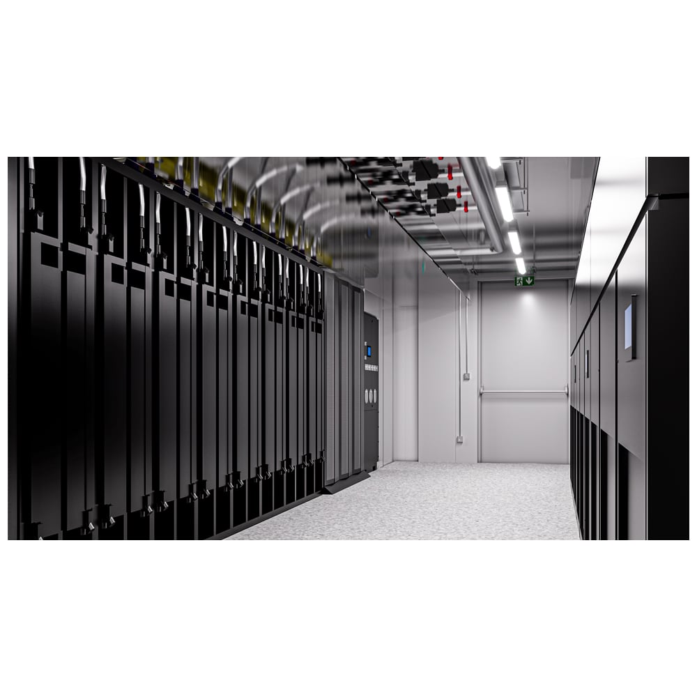 • PREFABRICATED, MODULAR SOLUTION: Deployed as a standalone modular data hall, minimizing on-site labor, reducing deployment time, and ensuring consistent quality.