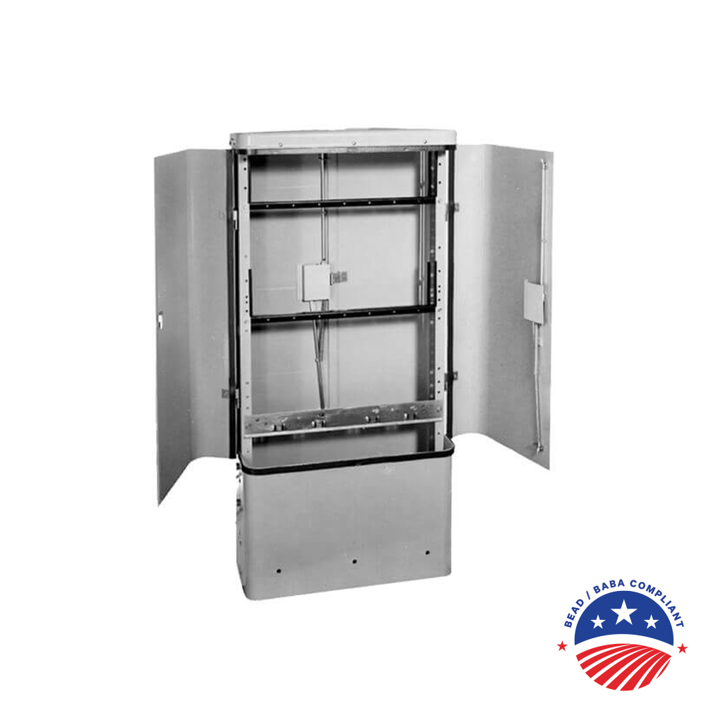 Multi-purpose copper/fiber splice or equipment pedestal enclosures for high pair-count splices, cross-connect interface, fiber/coaxial equipment, loop treatment electronics, and combined connection applications.