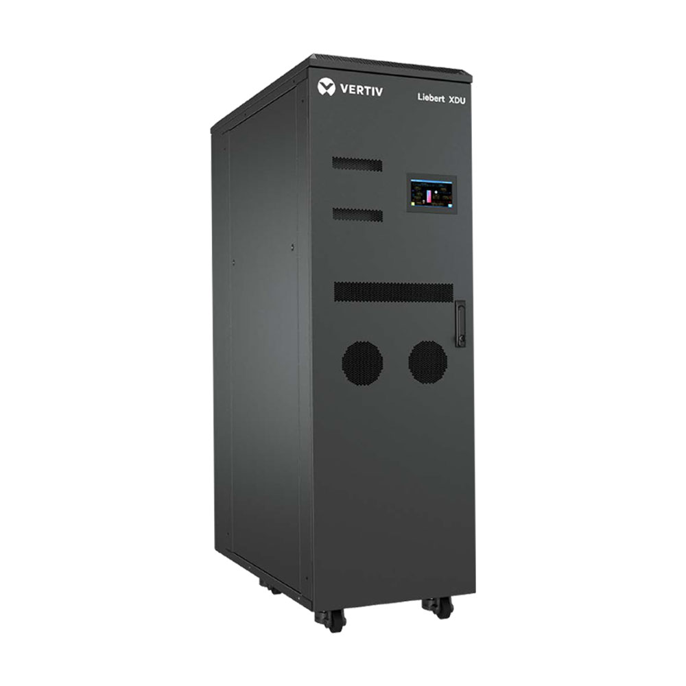 As data centers adopt liquid cooling, fitting in new cooling distribution infrastructure can be a real challenge. From hyperscale and colocation environments to edge applications, the Vertiv™ XDU simplifies your work with the flexibility to support rear door heat exchangers or direct contact liquid cooling. The Vertiv XDU’s compact footprint allows for end of row or perimeter placement. However, and wherever you incorporate the Vertiv XDU, you can easily distribute coolant to efficiently manage power-dense hot spots liquid to liquid up to 450 kW or 1,368 KW. Compact footprint for deployment flexibility within the row or perimeter; Efficient Cooling Distribution to manage power-dense hot spots and up to 450 kW or 1,368 kW; Precise Temperature Control to eliminate thermal shock for server CPU and GPUs; Redundant Pumps and Dual Power Feeds for optimizing reliable operation; Remote Monitoring available through communications with HTTP, SNMP, RS-485 Modbus, Modbus IP.