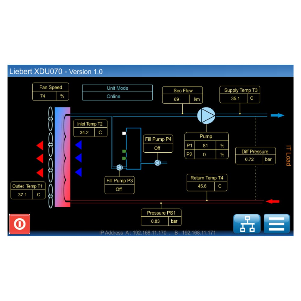 Seamlessly transition to high-efficiency liquid cooling technology with Vertiv™ CoolChip CDU (next generation of Vertiv™ Liebert® XDU family). From hyperscale and colocation environments to edge applications, the Vertiv CoolChip CDU offers flexible deployments for rear door heat exchangers or direct contact liquid cooling. It allows for in-rack, end of row, or perimeter placement options. Easily distribute coolant to efficiently manage power dense deployments with liquid-to-liquid heat exchange up to 100 kW, 450 kW, 600 kW, or 1,350 kW, and liquid-to-air heat exchange up to 70kW. With precise temperature control, this unit can eliminate thermal shock. Have reliable operations with its redundant pumps and dual power feeds and added peace of mind with remote monitoring and communications.