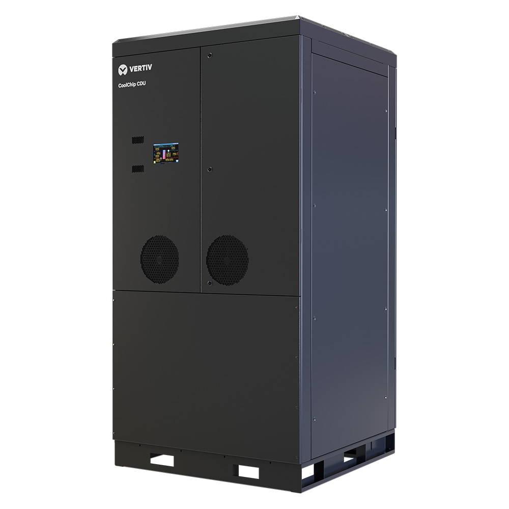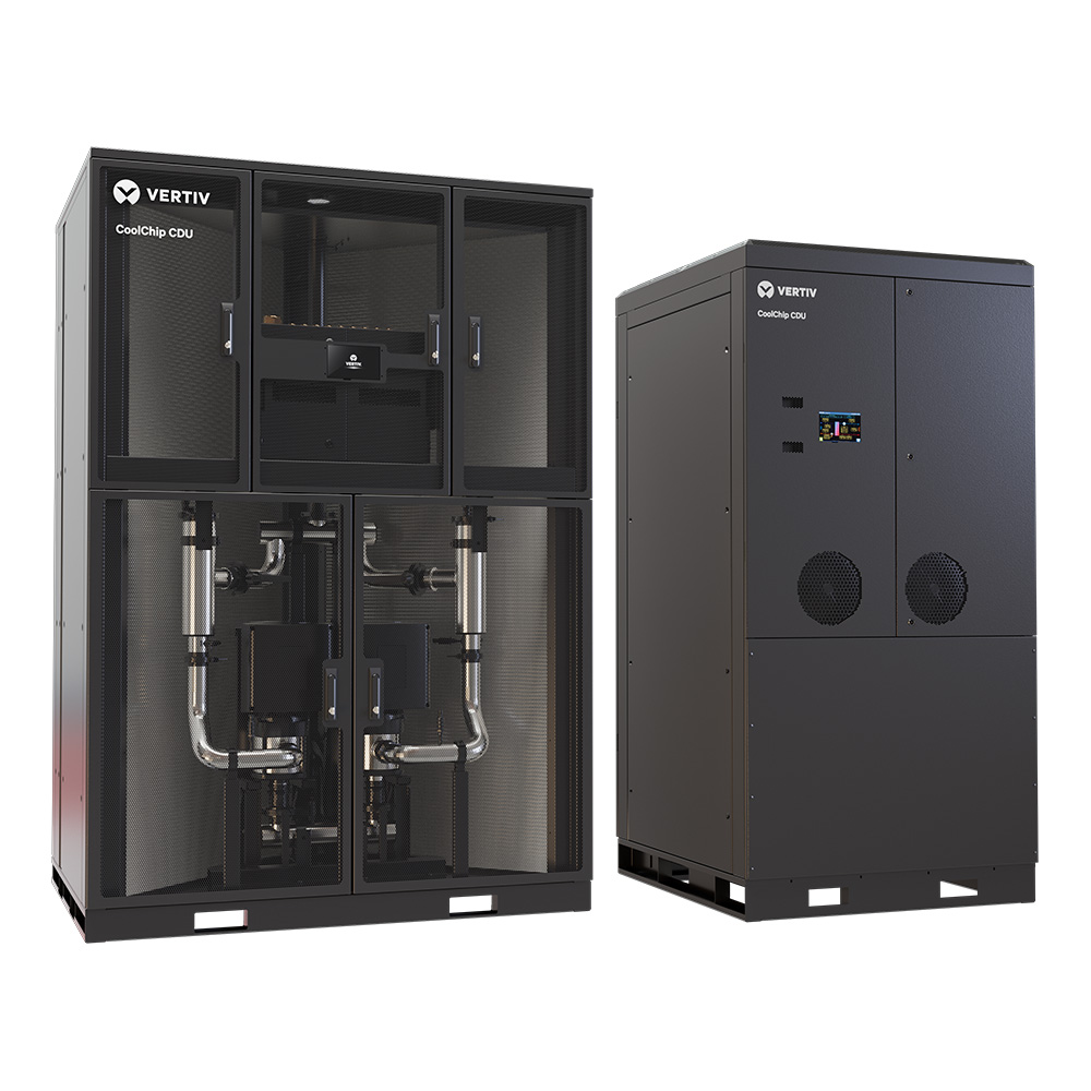 The Vertiv™ CoolChip CDU is designed to support liquid cooling within high density environments. It is suitable for direct-to-chip and rear door cooling applications that offer easy, cost-effective deployment in any data center. The Vertiv CoolChip CDU family has models that operate with and without access to facility water, allowing you to tap into the benefits of liquid-cooled servers to more efficiently support higher rack densities. Select between in-rack, in-row, or perimeter-based designs as well as liquid-to-liquid or liquid-to-air heat exchangers.