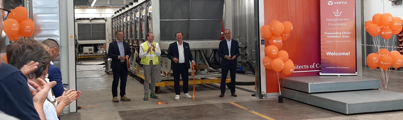 Piove di Sacco, Italy [September 18, 2023] –Vertiv (NYSE: VRT), a global provider of critical digital infrastructure and continuity solutions, unveiled an upgraded testing room at its thermal management centre near Tognana, Italy. This sizeable investment significantly increases the facility’s testing capacity and manufacturing capabilities in the existing space and demonstrates Vertiv’s ongoing commitment to the advancement of chilled water systems to help drive liquid cooling adoption. It also shows the company’s support of increasing demands on data centres, including high-performance computing, artificial intelligence (AI) and generative AI (GenAI).