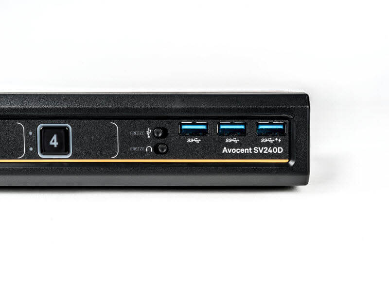 Three USB 3.0 ports on the front of the 240 KVMs enable easy connectivity to external USB devices, quick data transfer and high speed charging of mobile devices