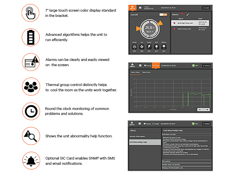 Every Vertiv™ Liebert® DM comes with one of the most advanced controller in the segment as a standard offering, which has a clear and easy to read screen display that enables simple and convenient unit management.