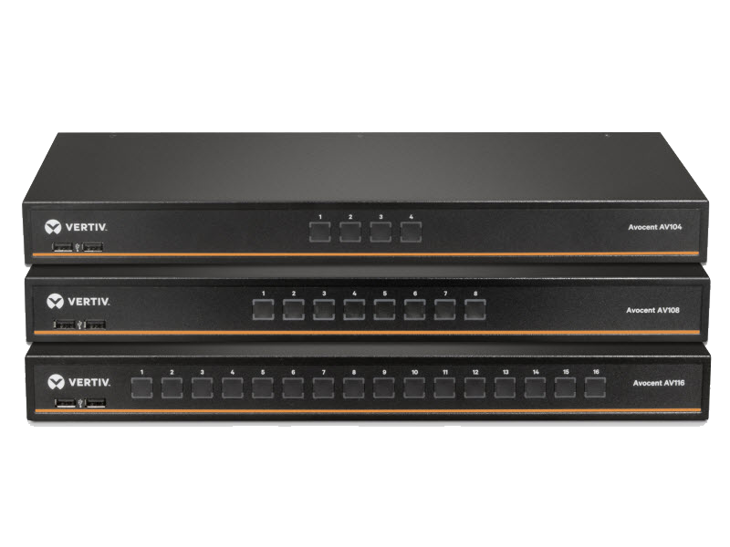 The Vertiv™ Avocent® SwitchView™ Single head 4 port Desktop KVM switch gives users access to up to 4 computers using a single keyboard, monitor and mouse.