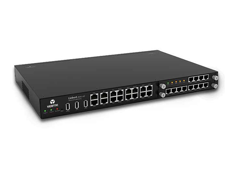 The Liebert® RDU-A G2 is an infrastructure management solution from Vertiv that allows data center administrators to manage environmental conditions i.e. temperature and humidity, leak, smoke, vibrations and digital inputs and outputs.