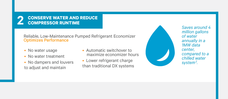 Colocation, cloud hosting and other large data centers need cooling solutions with low total cost of ownership-solutions that save energy, conserve water, reduce risks and simplify thermal management.