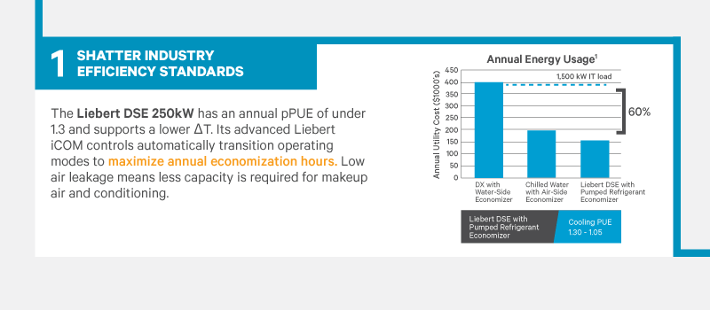 1 Vertiv calculations with certification for capacity and efficiency under the Air Conditioning and Heating Institution (AHRI) 1360 Program for Computer Room Air Conditioning.