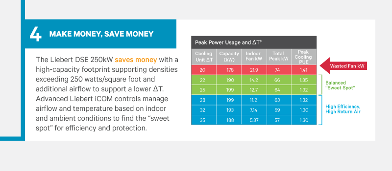 - Low max kW for more available IT power