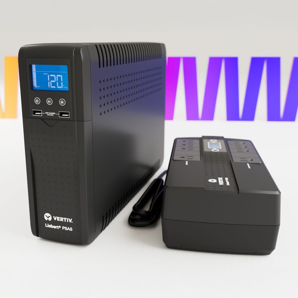 The Vertiv ™ Liebert® PSA5 line-interactive UPS family offers guaranteed battery backup and surge protection for computers, gaming consoles, workstations, retail point-of-sale (POS) equipment, wireless networks, surveillance systems and other electronics. Designed with a wide variety of premium features and a standard 3-year warranty, the Liebert PSA5 is the perfect choice for electronics that need high performance and reliable power protection.