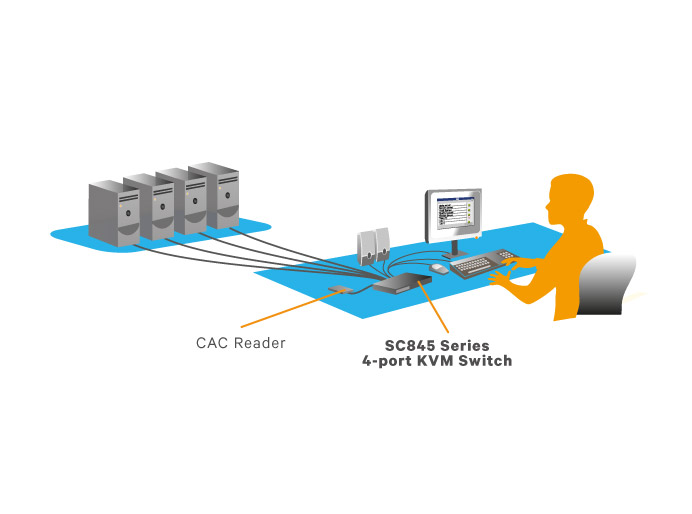 The Cybex SC800 series secure desktop KVM switching portfolio offers a proven solution for guarding against desktop cyber intrusion. These switches, that switch between networks at the push of a button, are certified to meet the NIAP Common Criteria Protection Profile for Peripheral Sharing Switch ver. 3.0. They provide high resolution compatibility utilizing HDMI, DisplayPort, and DVI technology. The SC800 series models support 2, 4, or 8 networks, a single monitor, and CAC through a dedicated port.
