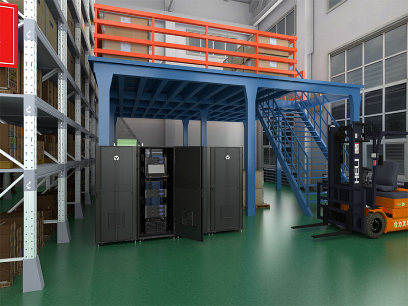 Multiple floor mounted cabinets integrated with necessary hardware to support IT equipment, sealed to prevent environmental disturbances such as water, dust, or debris from entering the system