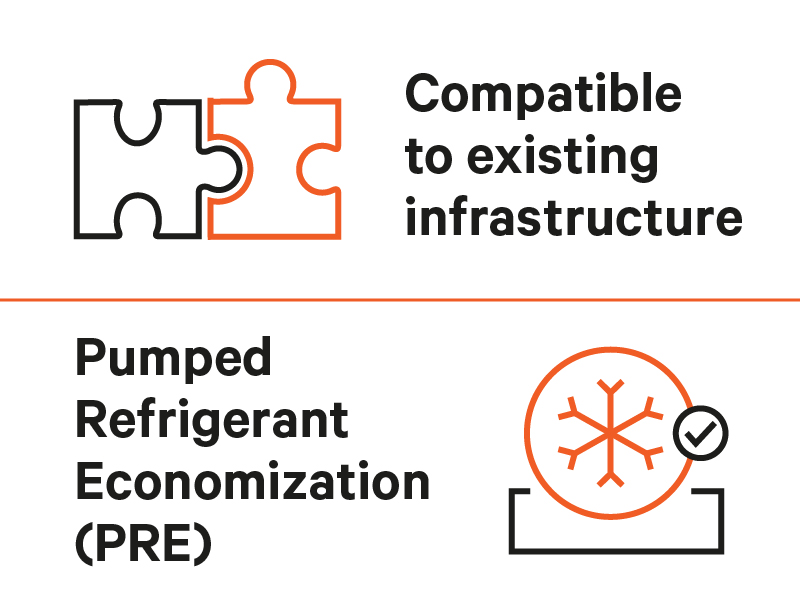 The Vertiv™ CoolPhase CDU removes the traditional barriers of needing a centralized chiller to deploy direct-to-chip liquid cooling. It gives you a cost effective, flexible means for deploying high density racks where you need them to support advanced applications. It has a compact footprint, modular format, and up to 320 kW of heat rejection. Using Pumped Refrigerant Economization (PRE) in the primary loop to the Vertiv™ Liebert® MCV high density condenser, the CoolPhase CDU removes heat from the secondary fluid network (SFN) in an internal liquid-to-refrigerant heat exchanger. This internal heat exchanger design chills the fluid in the SFN to optimal temperatures to deliver high-density cooling to direct-to-chip cold plates or to rear door heat exchanger (RDHx) such as Vertiv™ Liebert® DCD. The CoolPhase CDU PRE heat rejection takes advantage of seasonal conditions to adjust the level of economization, delivering increased cost savings throughout the year.