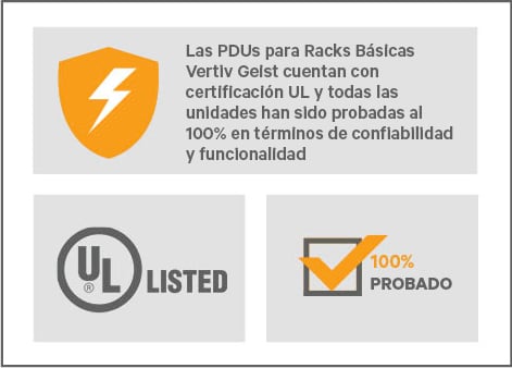 Garantía: Las PDUs para racks básicas Vertiv PowerIT cuentan con una garantía estándar de tres años, la cual puede ampliarse automáticamente a cinco años si el producto se registra dentro de los 120 días después de la compra.Especificaciones