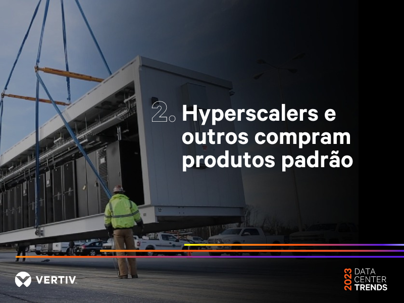 De acordo com recente pesquisa realizada pela Omdia, 99% dos operadores de data centers empresariais dizem que os designs modulares, pré-fabricados, serão parte de suas futuras estratégias para data centers. Isso é mais do que uma tendência: é o novo normal. Para 2023, os especialistas da Vertiv preveem que os hyperscalers também darão uma guinada para essa mesma direção, já que buscam a velocidade e as eficiências que a padronização entrega.