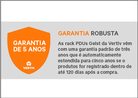 Garantia: As Rack PDU Básicas Vertiv PowerIT vêm com uma garantia padrão de três anos que é automaticamente estendida para cinco anos se o produto for registrado em até 120 dias após a compra.Especificações