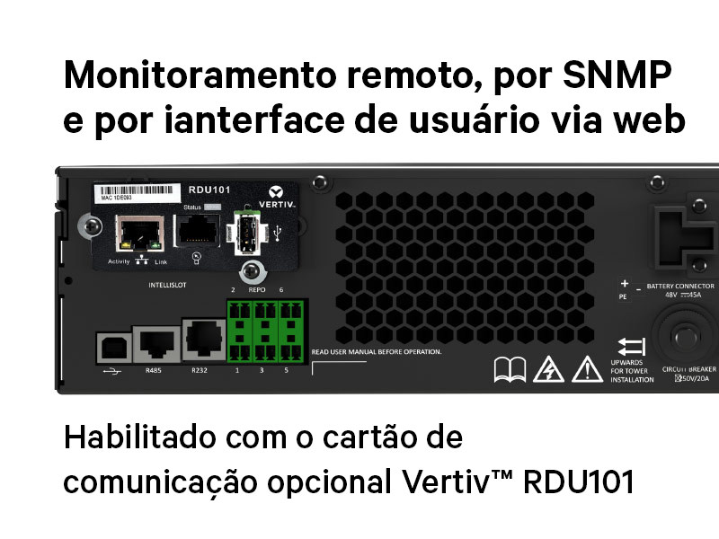 As UPDUs Vertiv estão disponíveis em capacidades máximas de potência de carga de 11kW e 22kW, em formatos vertical ou horizontal, com várias combinações de receptáculos e opções de monitoramento. Para ver a lista completa dos modelos disponíveis, acesse o Seletor de rPDU.