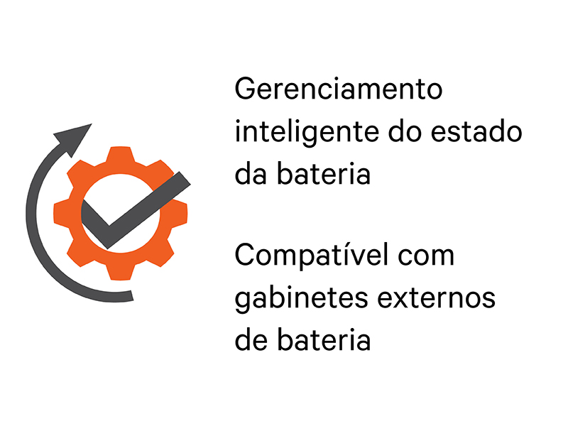 | 8.000 VA / 8.000 W | Típica: 208VAC / Faixa: 176-280VAC | 208/120VAC (configurável pelo usuário) | Até 98% no modo ECO Ativo; até 95% no modo on-line | Entrada/Saída com fios; PODs opcionais disponíveis | 10.2 in | 16.9 in | 25.6 in | 224.8 lb |